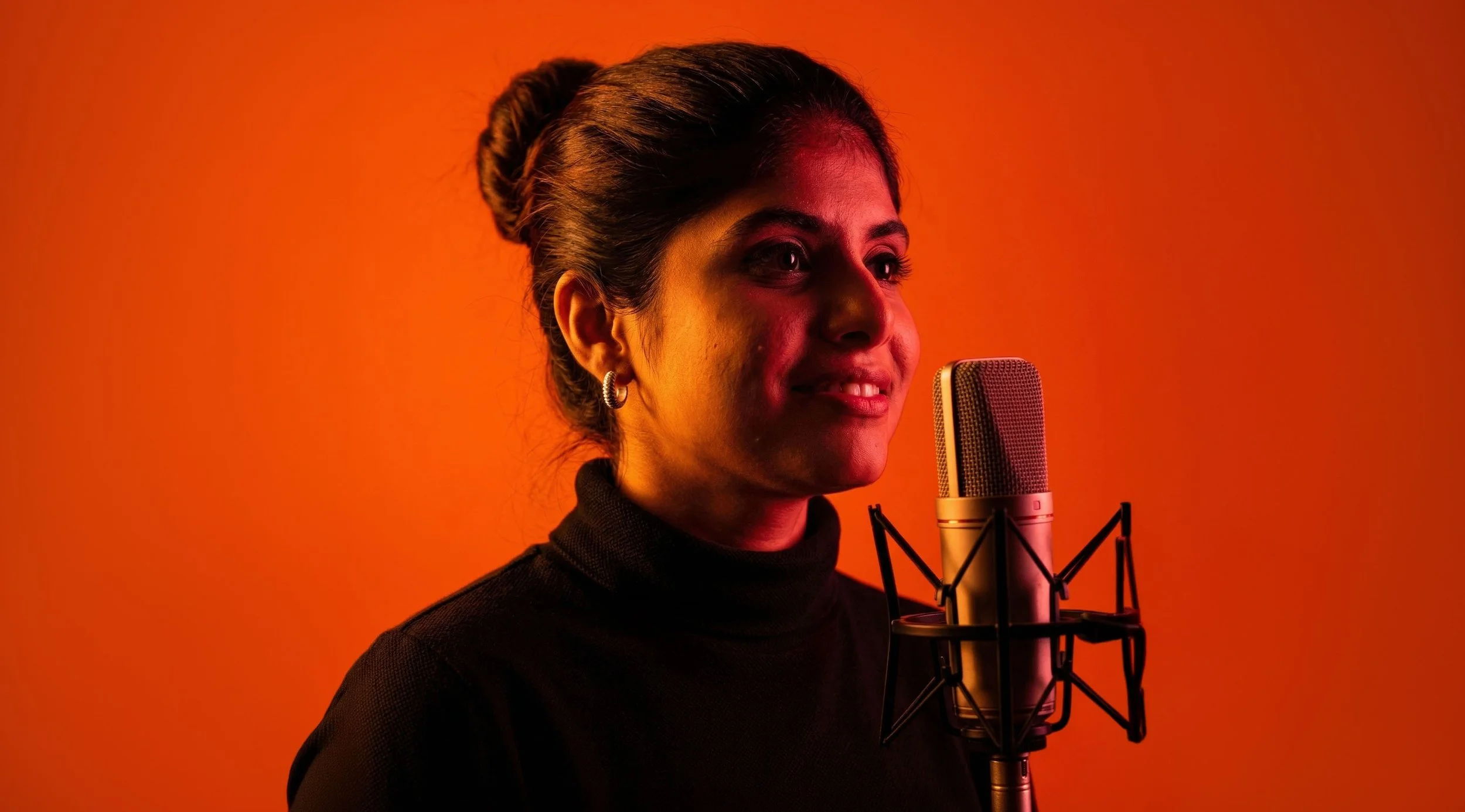 I am fluent in English & Hindi (& the "Hinglish" in between) and record with a broadcast-quality home studio powered by a RODE NT1-5th Gen.
